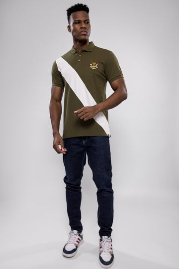 Make a bold and confident statement with this olive green polo T-shirt, featuring a standout...