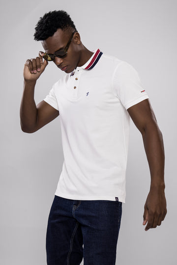 Elevate your casual wardrobe with this timeless white polo T-shirt. Crafted from premium breathable cotton,...