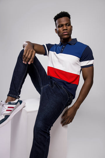 Add a bold edge to your casual wardrobe with this eye-catching Colorblock Polo T-Shirt. Featuring...
