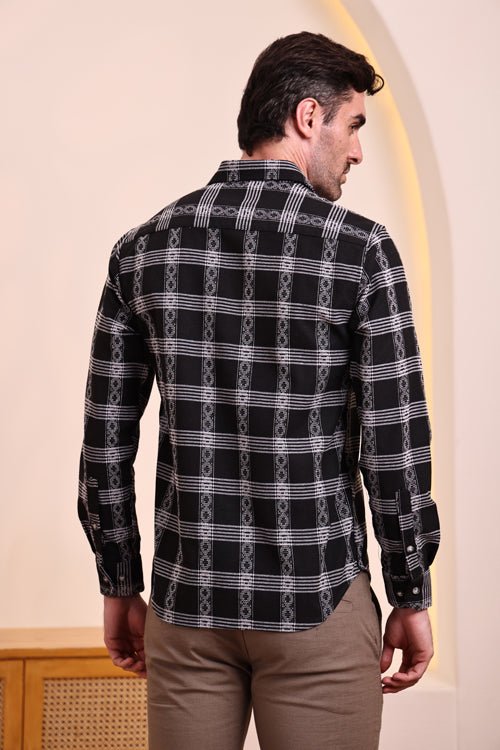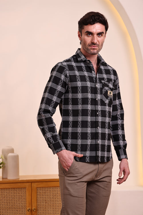 Upgrade your casual wardrobe with this stylish black checkered shirt. Designed with a smart check pattern and a comfortable fit, this shirt is perfect for both casual outings and semi-formal occasions. Made from soft, breathable fabric, it ensures all-day comfort while keeping your style on point.