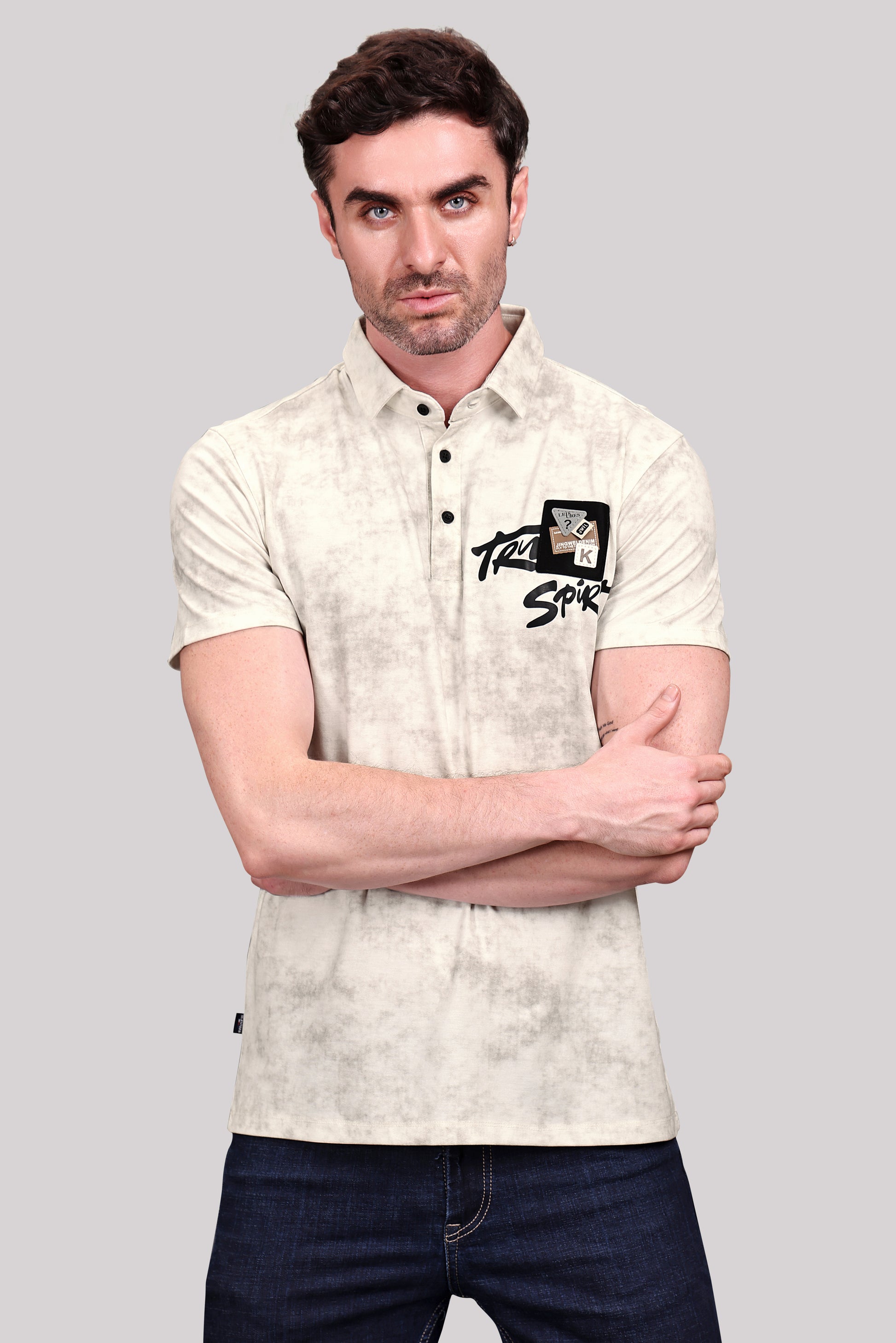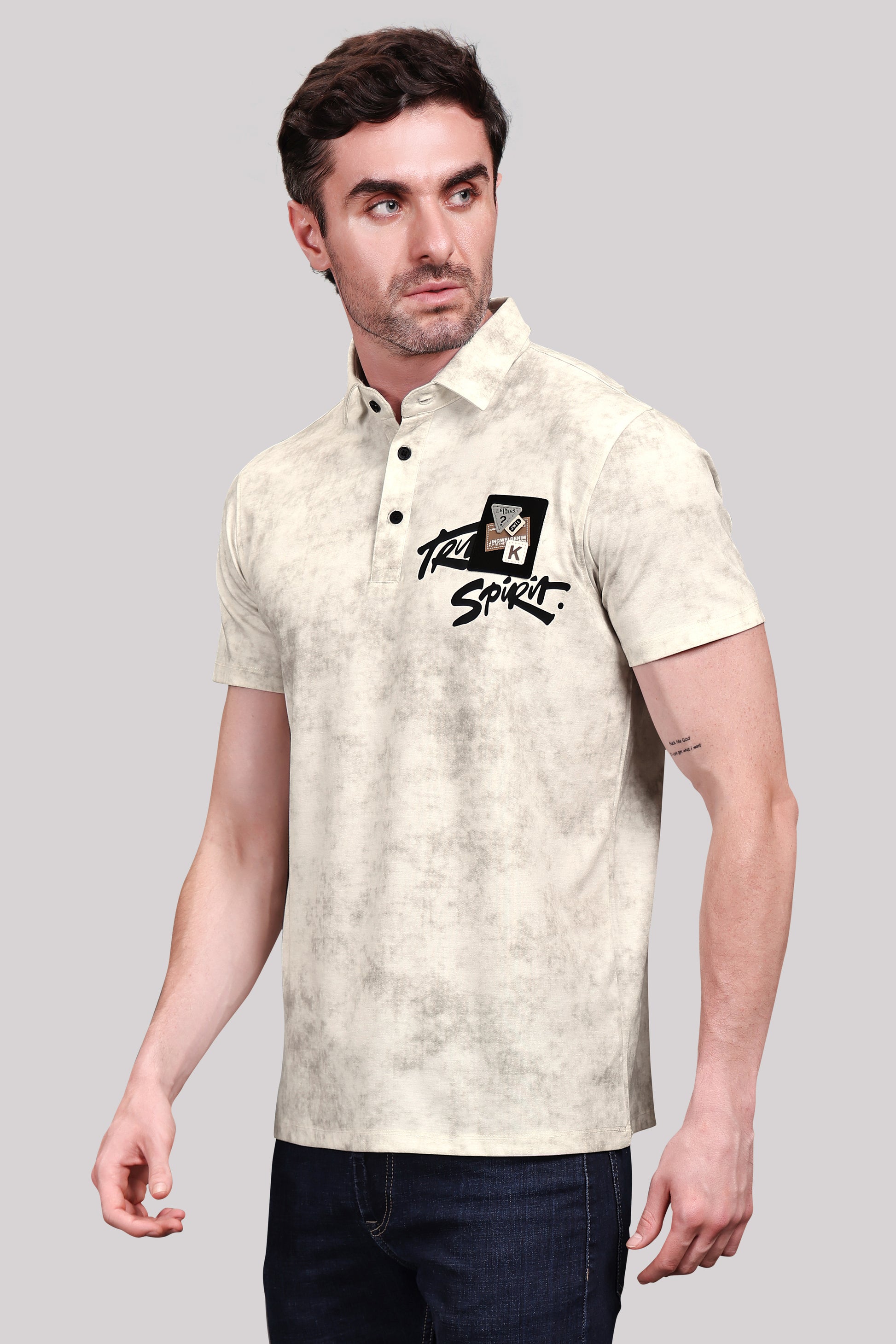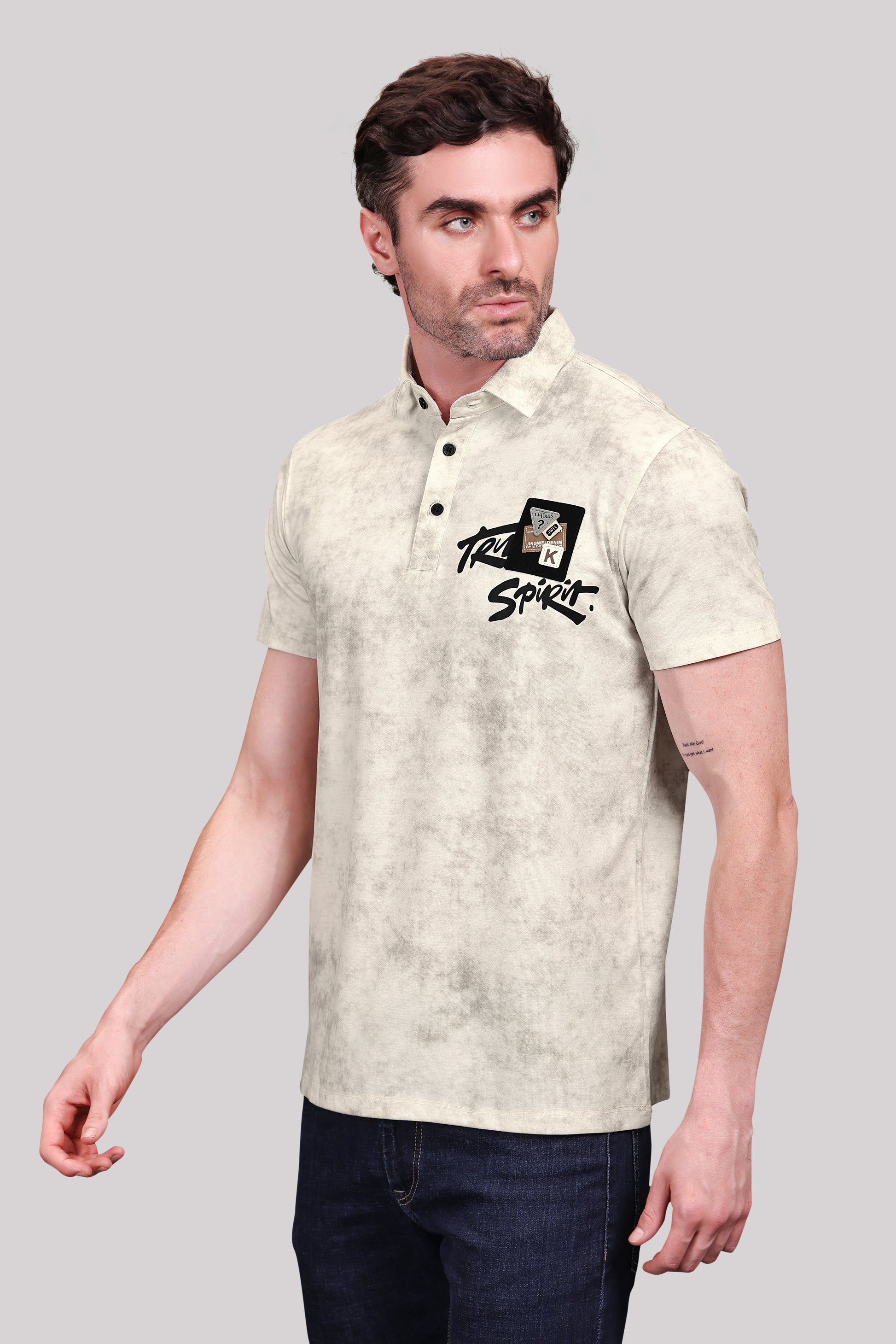 Upgrade your casual style with this trendy men’s polo T-shirt. Designed with a subtle tie-dye effect and bold chest graphic print featuring “True Spirit,” this T-shirt is perfect for a modern and stylish look. The soft cotton-blend fabric ensures comfort, while the classic polo collar with button placket adds a touch of sophistication. Pair it with jeans, chinos, or shorts for versatile everyday wear
