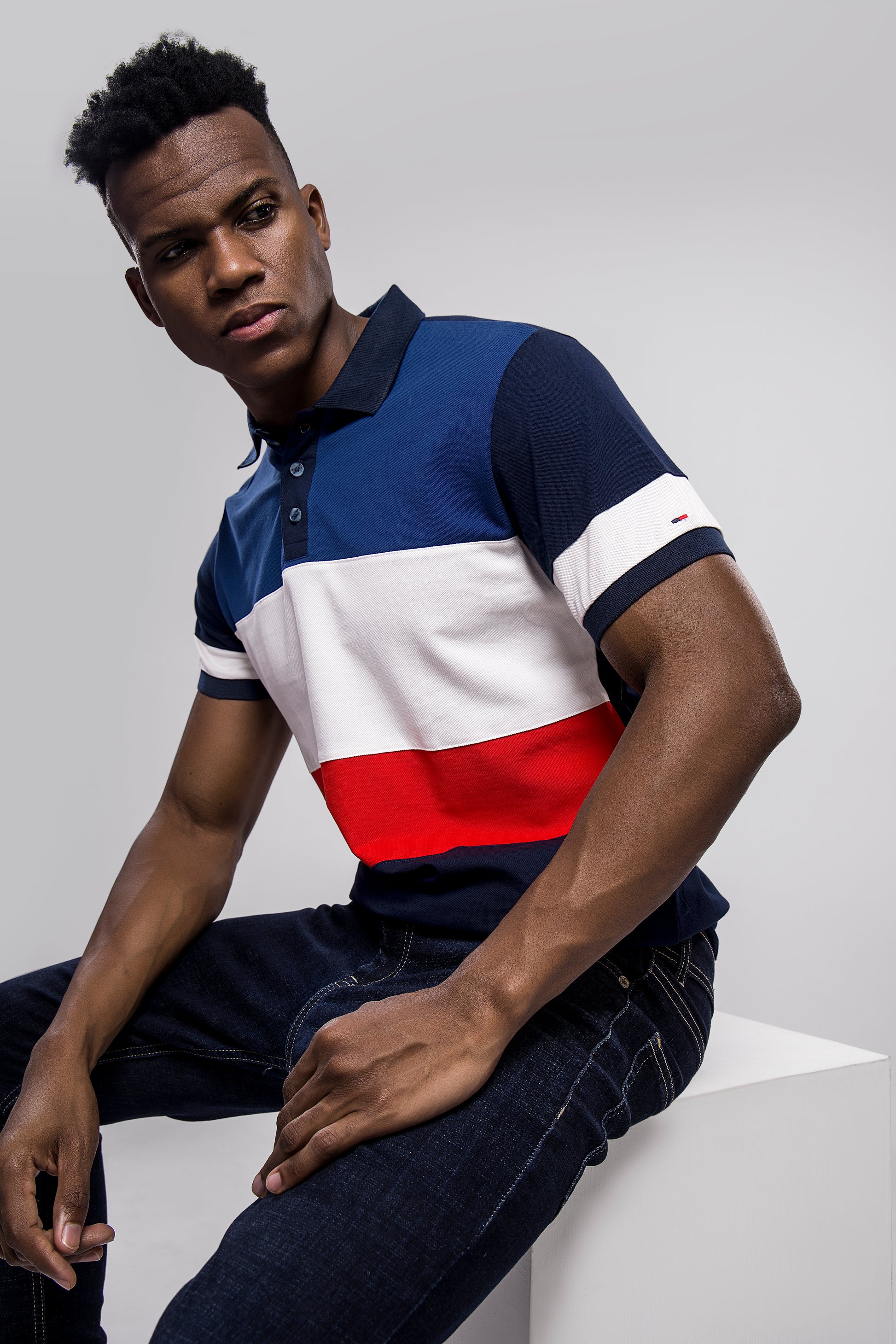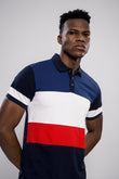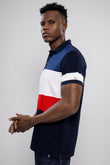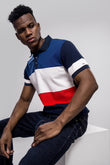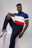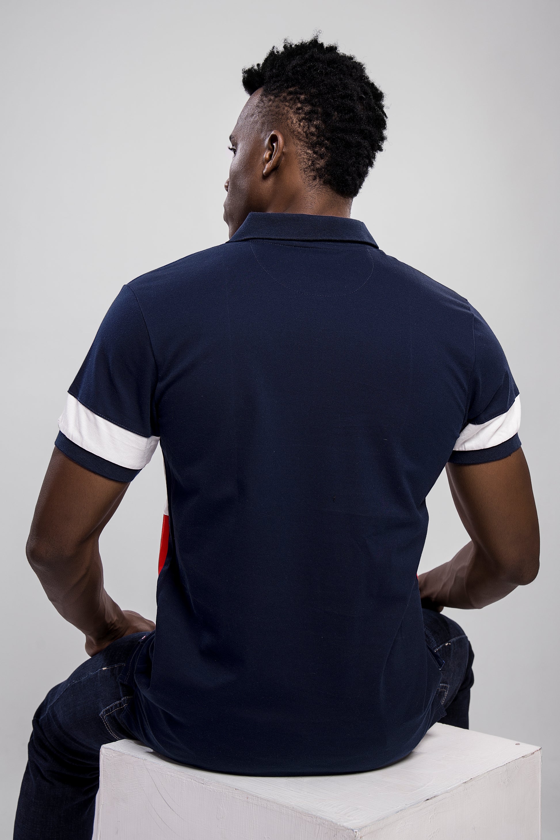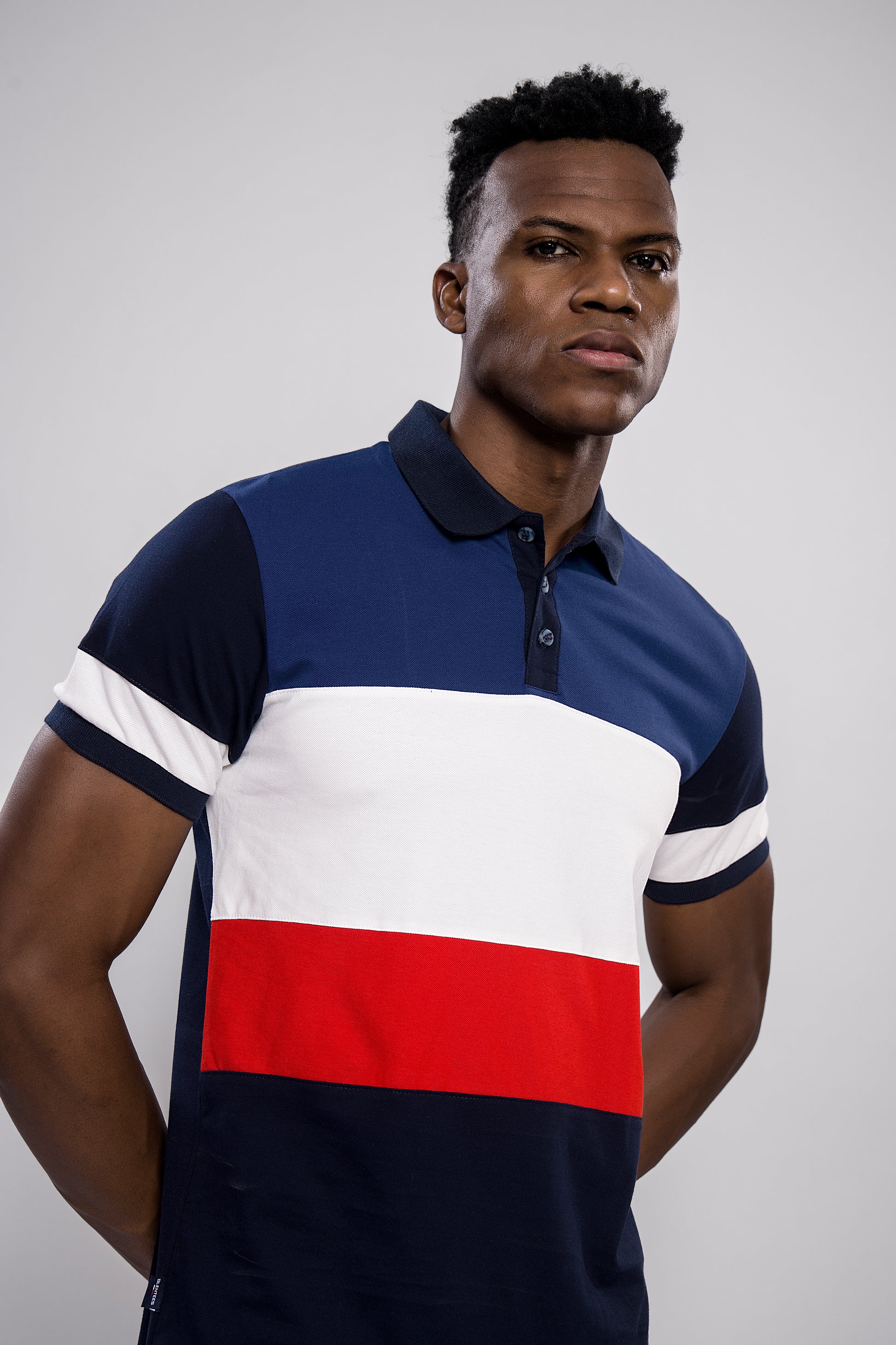 Add a bold edge to your casual wardrobe with this eye-catching Colorblock Polo T-Shirt. Featuring a striking navy, white, and red panel design, this slim-fit polo is crafted from a soft cotton blend that ensures all-day comfort with modern street-style appeal. Finished with a classic button placket and ribbed cuffs, this tee is made for those who want to stand out while keeping it clean and stylish.
