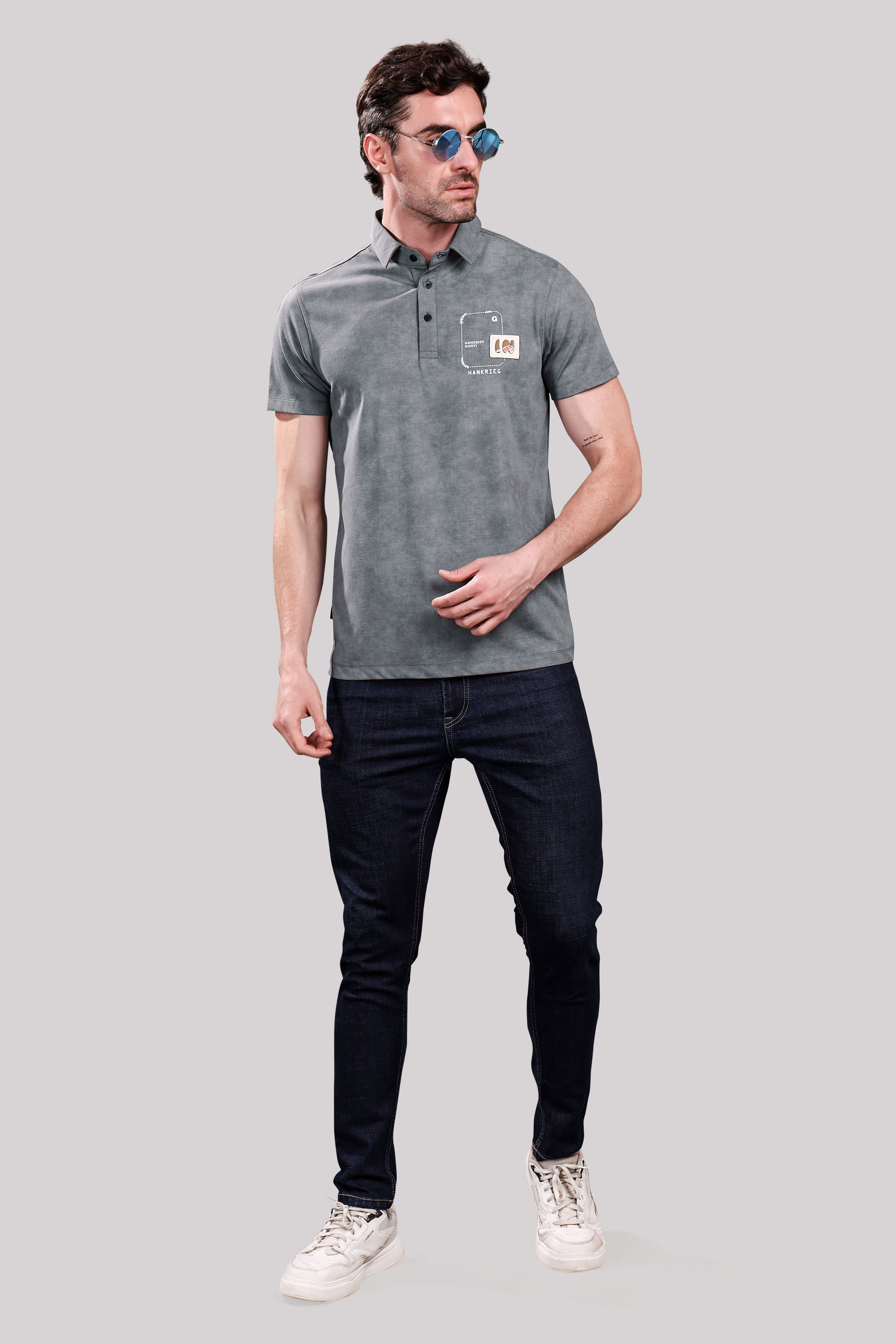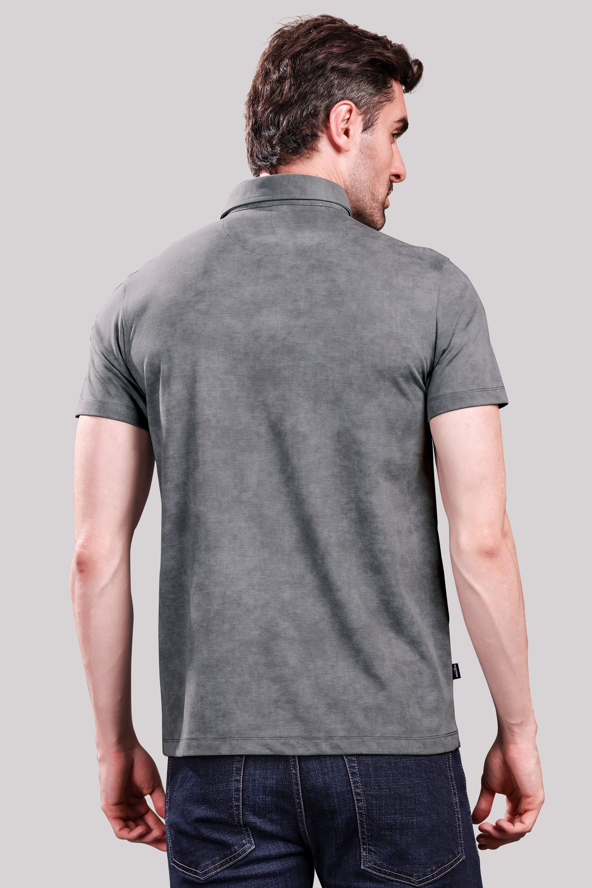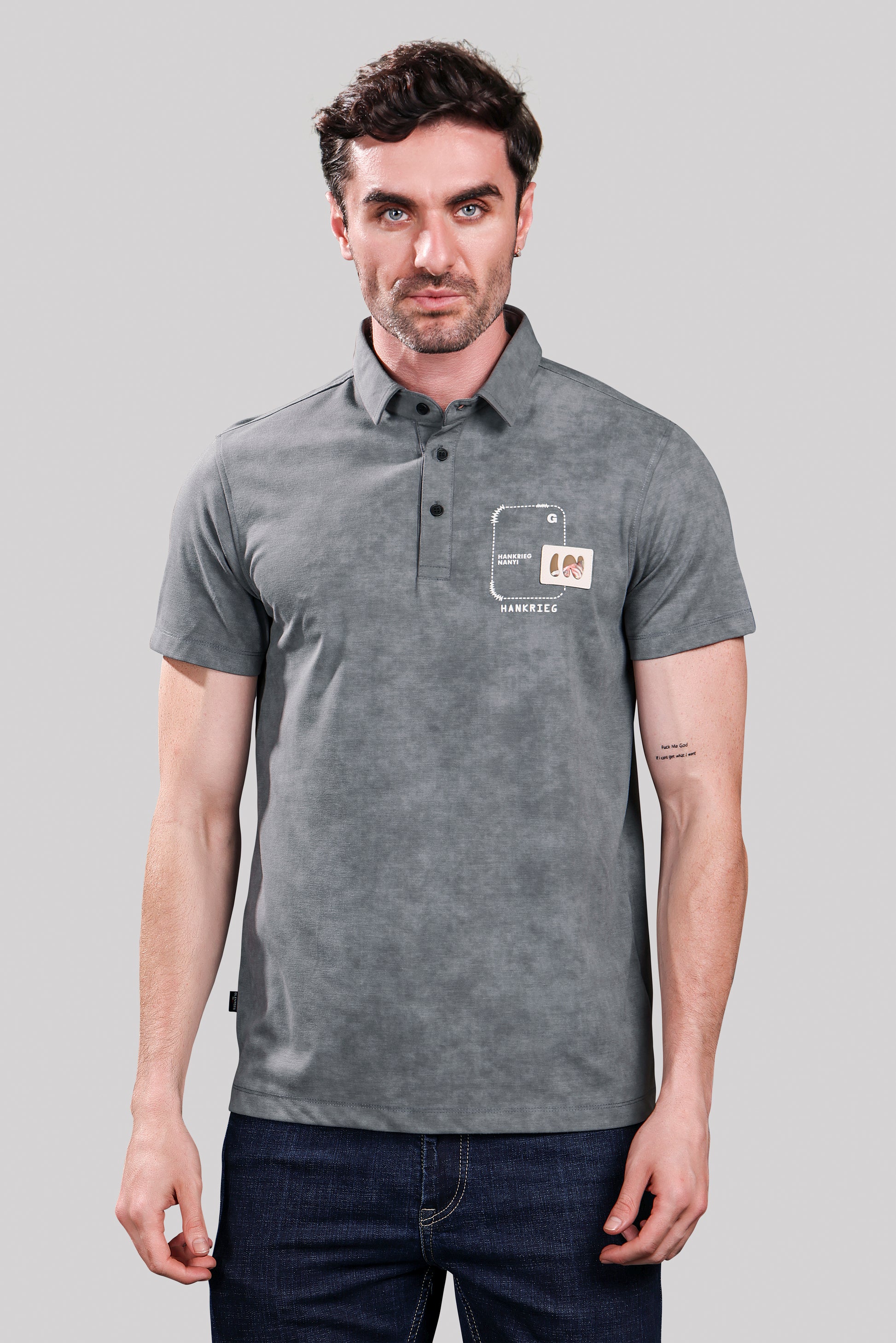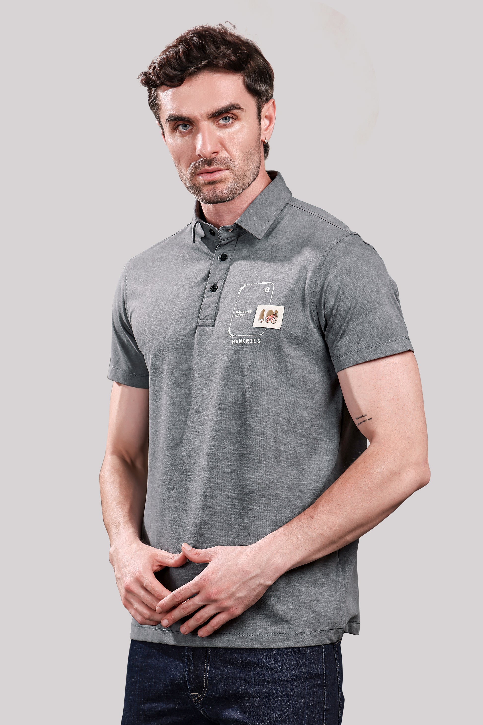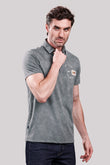 Men’s Grey Polo T-Shirt – Casual Wear with Chest Patch Print