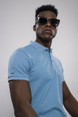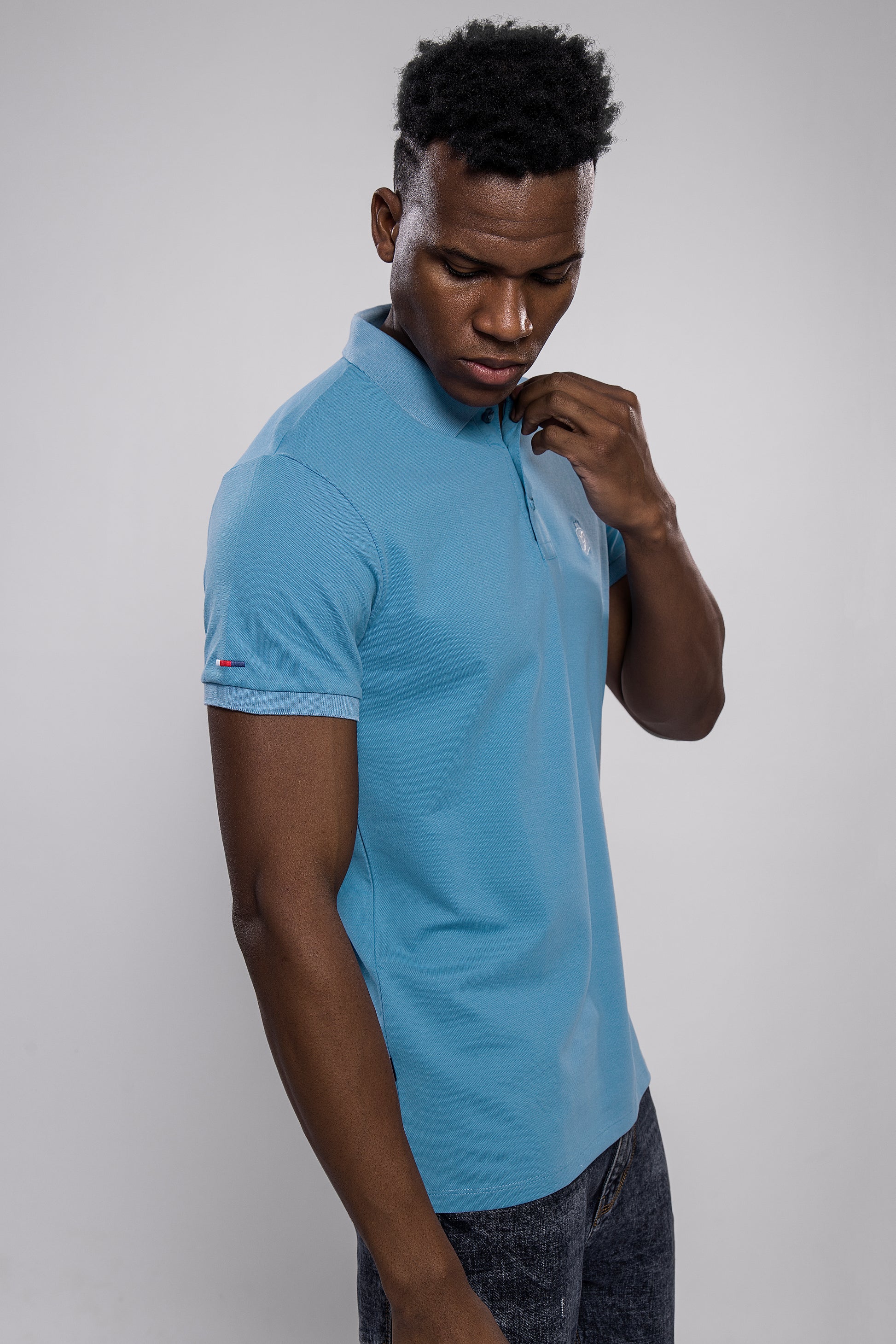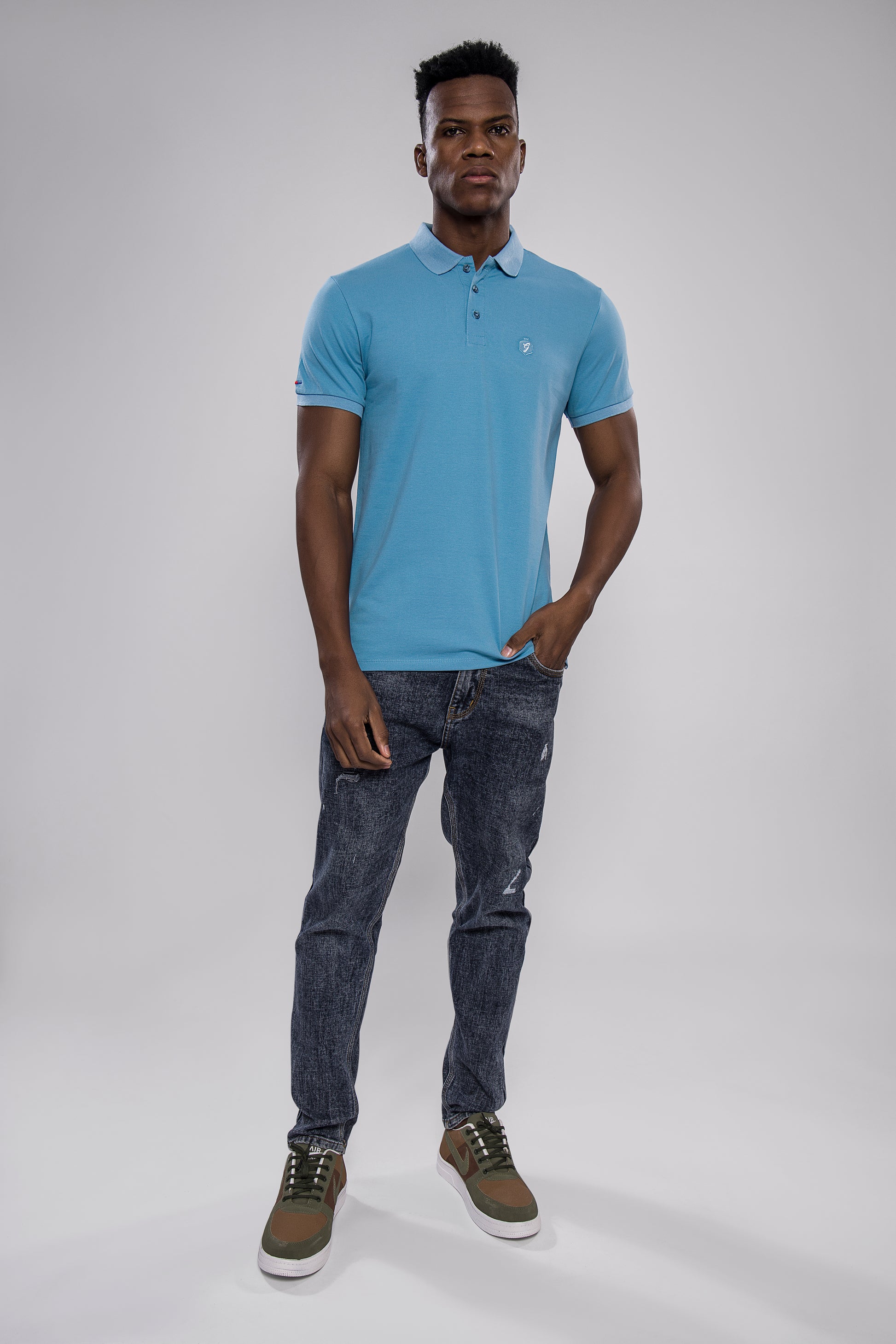 The sky-blue tone brings a refreshing, youthful vibe, while the classic three-button placket, ribbed cuffs, and signature chest logo ensure timeless appeal. Whether paired with jeans, chinos, or shorts, this polo is your versatile style essential for any season.