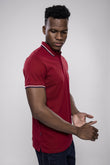 Men’s Solid Maroon Polo T-Shirt with Contrast Collar & Sleeve Tipping