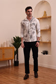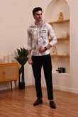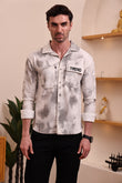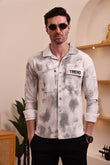 Men’s Stylish Casual Shacket Shirt – Grey & White Washed Pattern