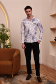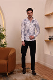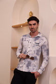 Men’s Stylish Casual Shacket Shirt – Navyblue & White Washed Pattern