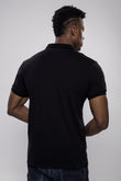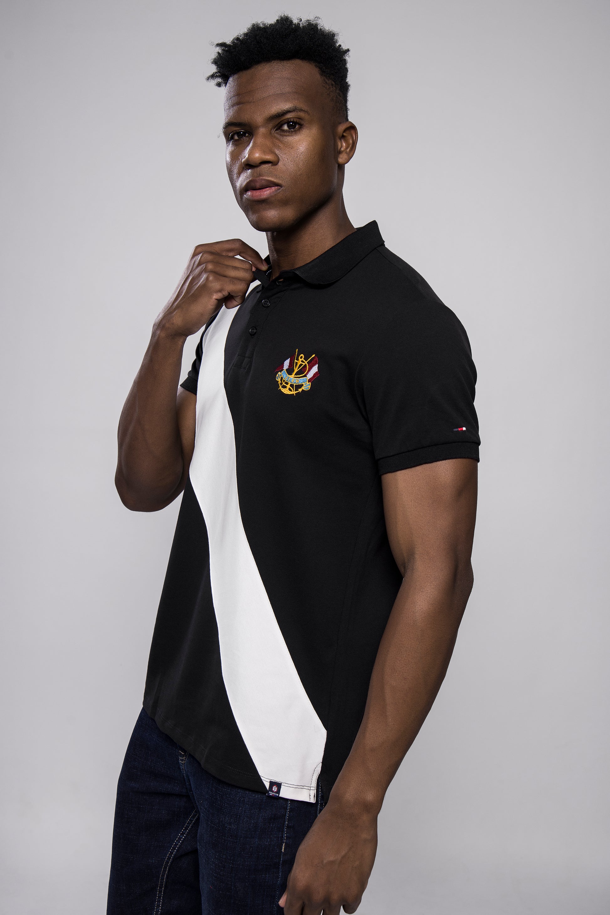 Men's Premium Black Polo T-Shirt with White Diagonal Stripe & Crest Embroidery