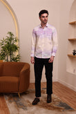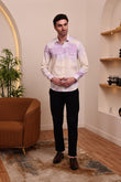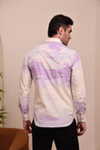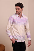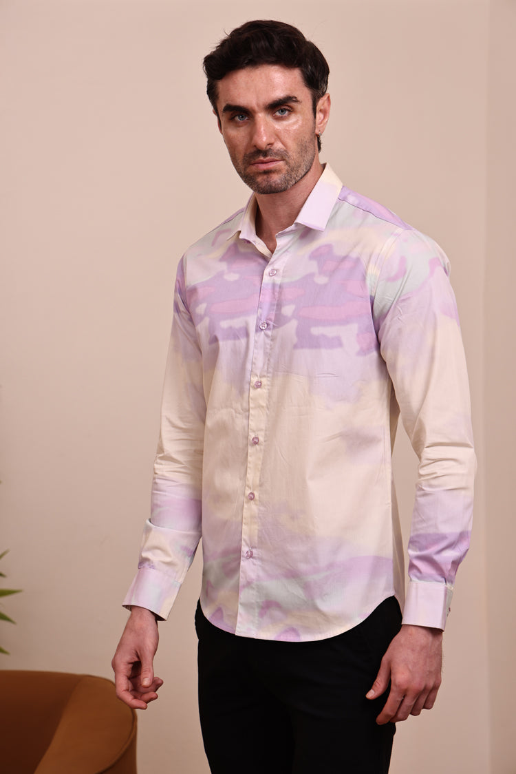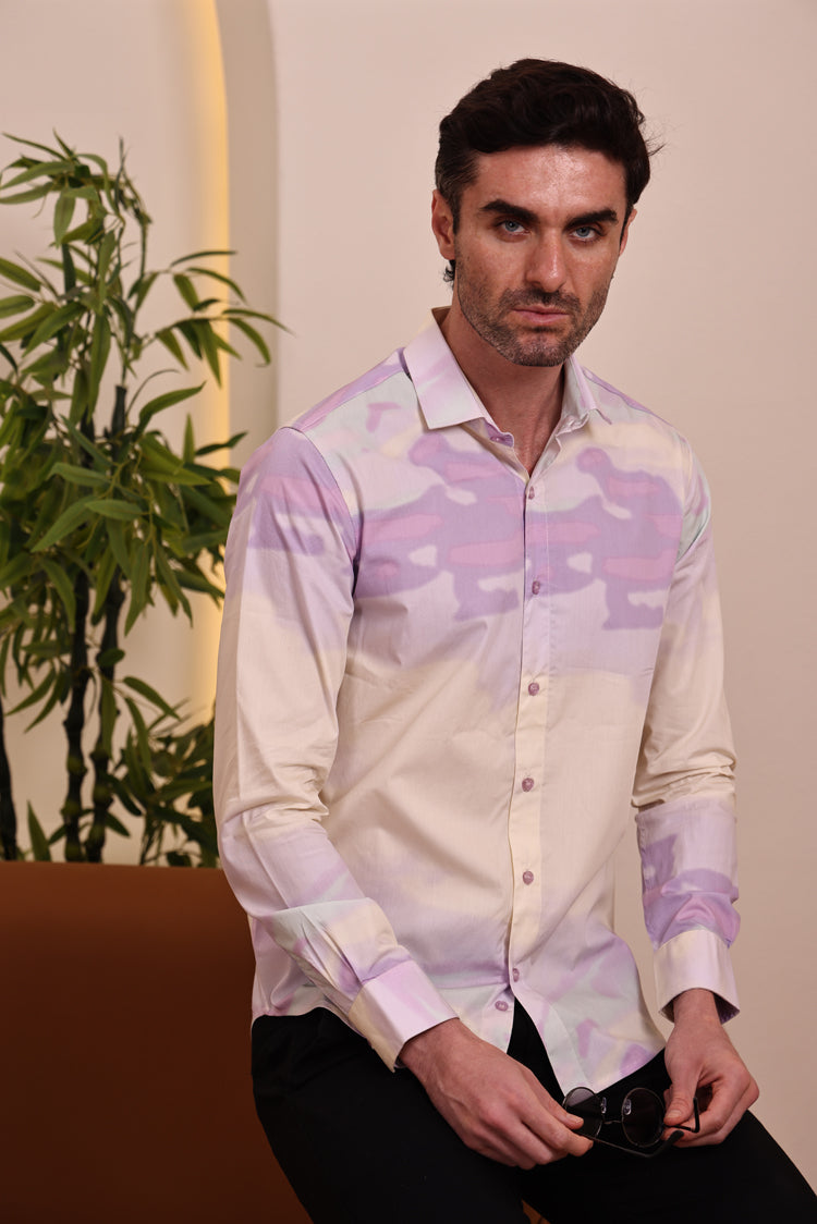 This stylish camouflage print shirt is a perfect addition to your casual wardrobe. The unique purple and beige color combination sets it apart from traditional camouflage prints, giving it a modern and fashionable edge. Pair it with black trousers or dark denim jeans for a cool and contemporary look. Ideal for weekend outings, casual get-togethers, or a day out with friends.